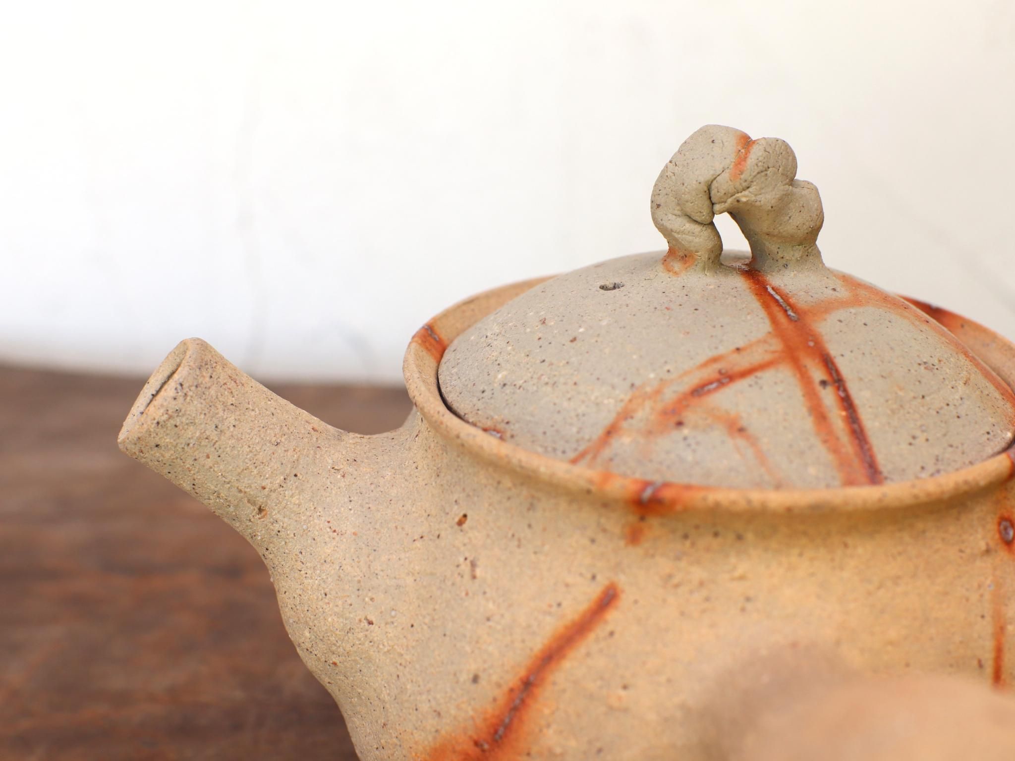 荒土使用、ひだすきの急須。土ものならではの暖かい雰囲気が特徴です。