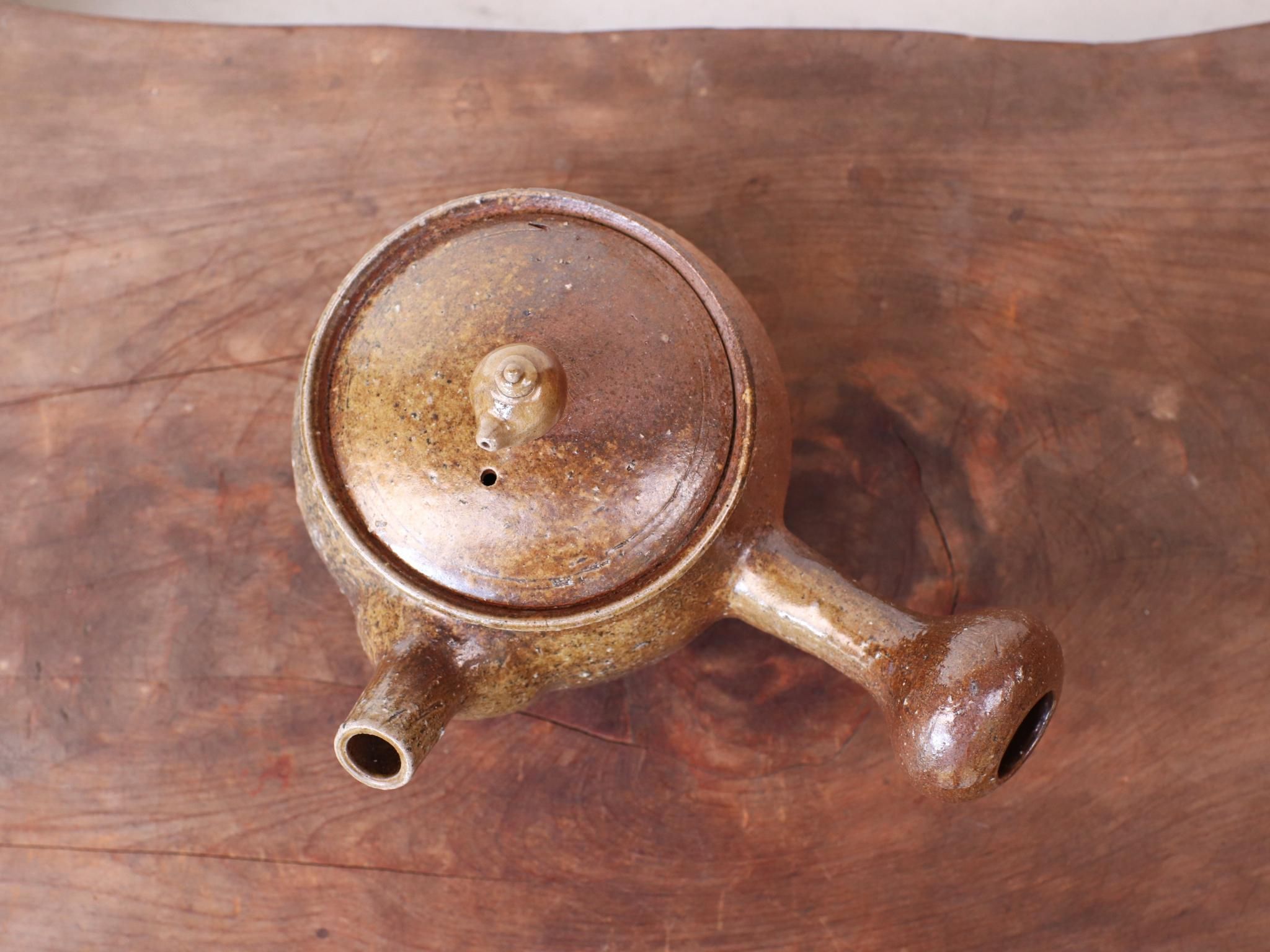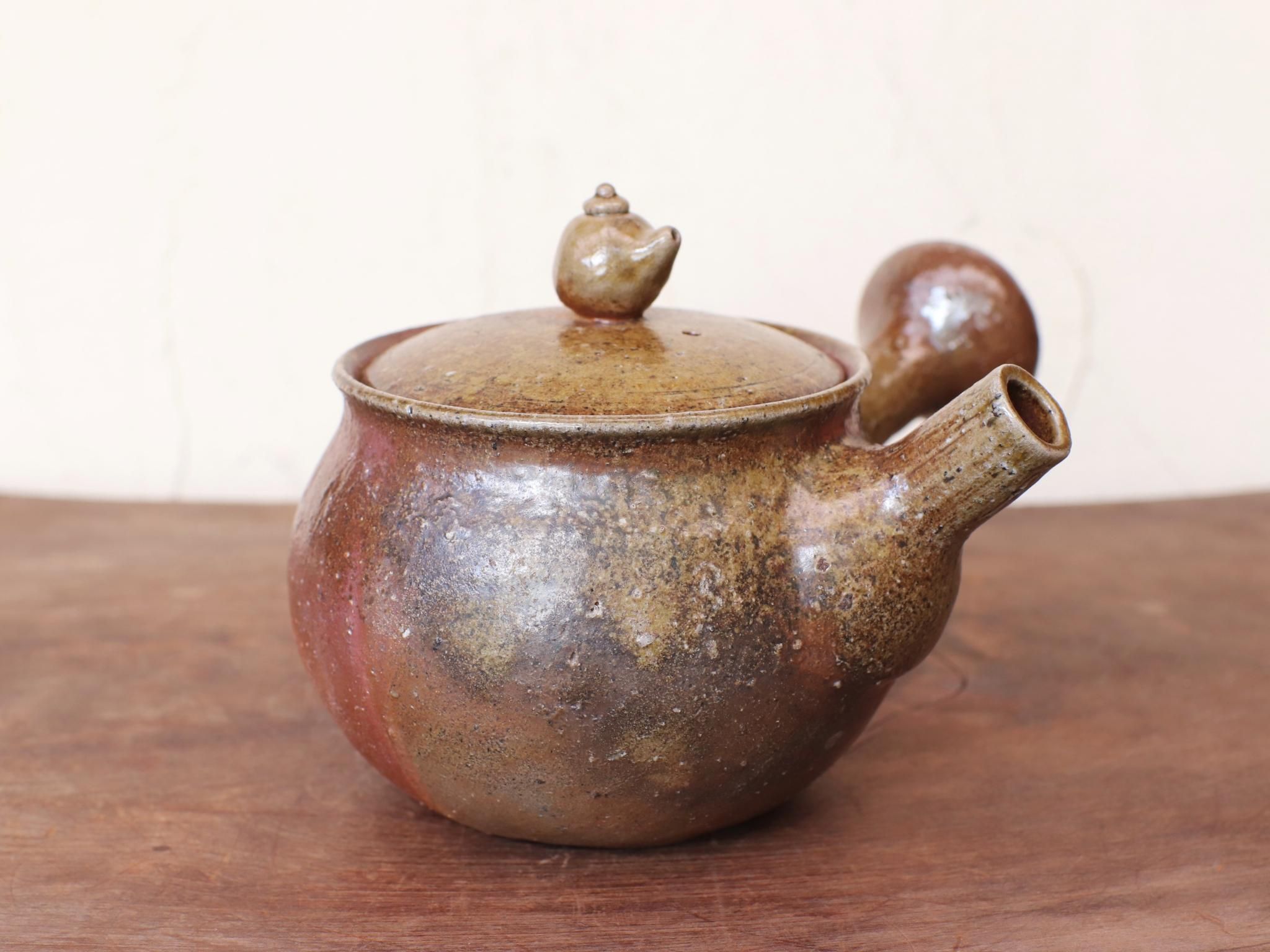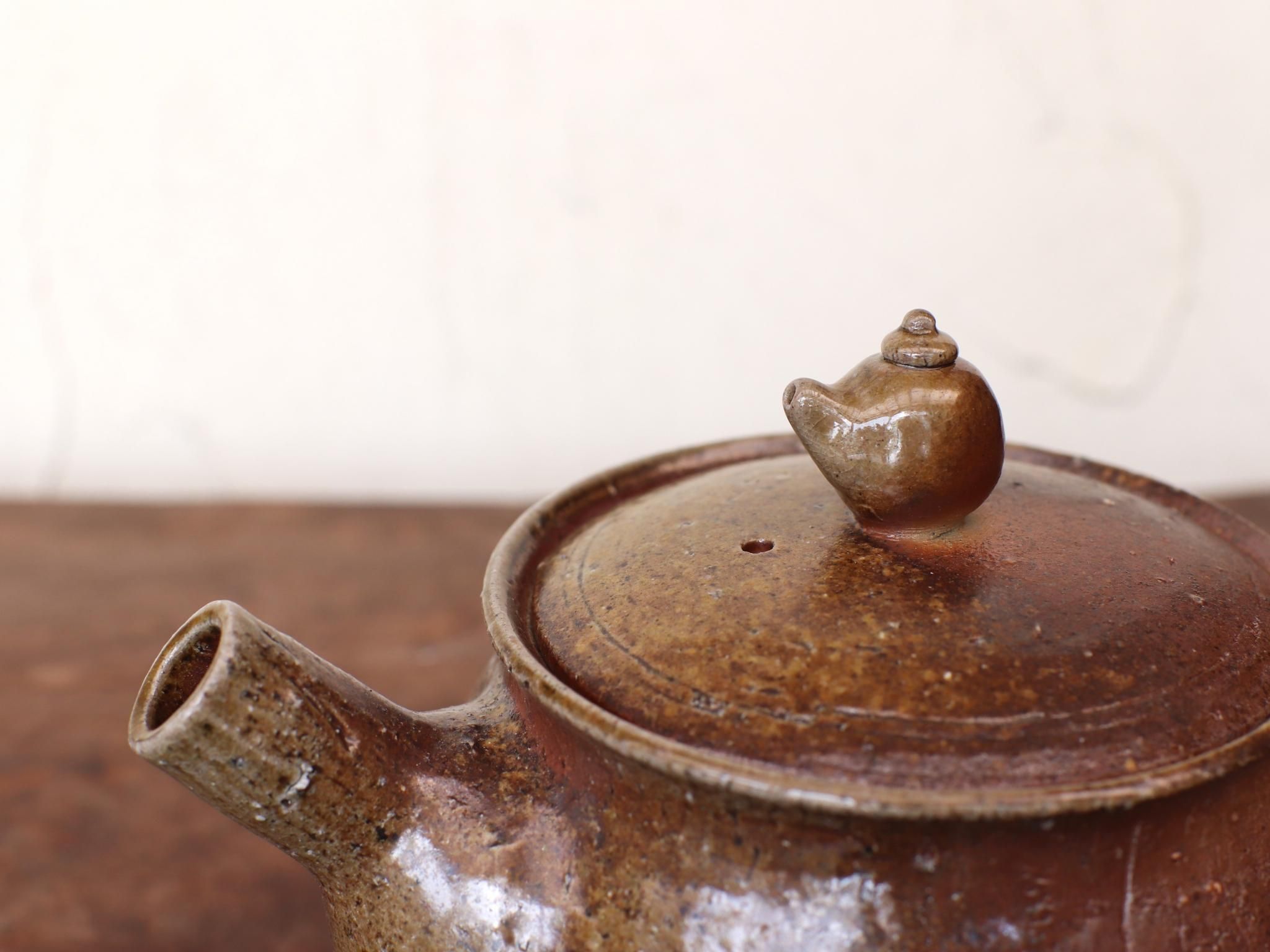 よく見ると蓋の上にチビ急須が乗っている遊び心くすぐるサンギリの急須で、土ものならではの温かい雰囲気が特徴です。